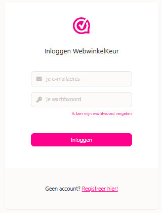 - Login op dashboard.webwinkelKeur.nl met je persoonlijke logininformatie.
