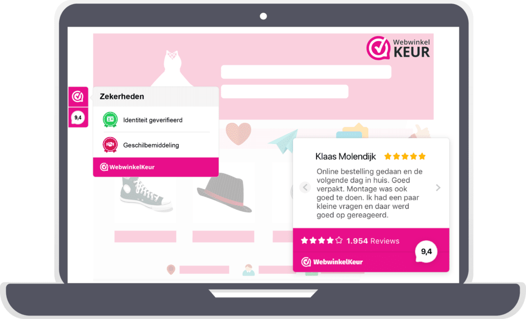 In tegenstelling tot andere keurmerken, bieden we meer dan enkel een mooi logo. Namelijk ook een reviewsysteem waarmee je reviews kunt verzamelen. We hebben tal van integratiemogelijkheden waaronder onze speciale sidebar, hiermee kunnen jouw bezoekers de echtheid van het keurmerk controleren en reviews lezen zonder je webshop te verlaten. Ook bieden we een widget met de laatste reviews aan waarmee je jouw gemiddelde beoordeling eenvoudig toont op jouw webshop en banners welke direct wijzen op de voordelen van het WebwinkelKeur. Hiermee haal je meer rendement uit ons keurmerk.