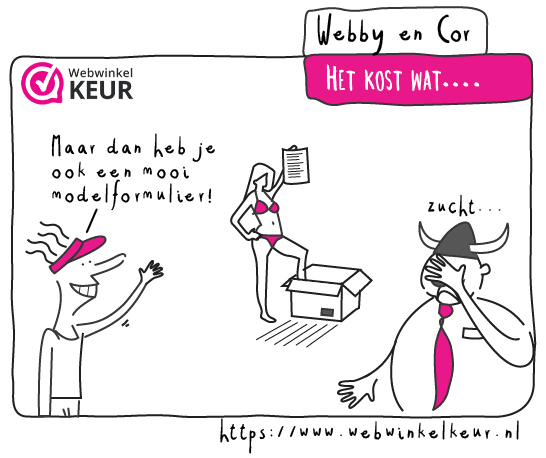 Het is verplicht om jouw klanten te wijzen op het herroepingsrecht, dit moet niet alleen binnen de algemene voorwaarden, maar ook daarbuiten op een klantenservice pagina. Doe je dit niet, dan wordt het herroepingsrecht verlengd tot het moment dat je de klant wel geïnformeerd hebt. Hierdoor kan het voorkomen dat jouw klant 9 maanden na aankoop nog steeds mag retourneren. Zaak is dus om aan deze wettelijk vereiste te voldoen, dit kan door eenvoudig onze voorbeeldtekst te kopiëren en op jouw webwinkel te plakken.