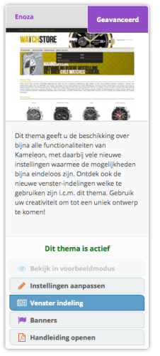 - Ga weer naar 'Mijn webshop' > 'Instellingen' > Webwinkel thema's en kies deze keer voor Venster indeling.