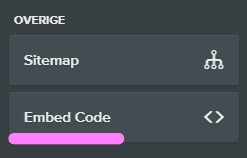 - In het linkermenu onderaan, selecteer 'Embed Code' en sleep die naar de onderkant van je beginpagina.