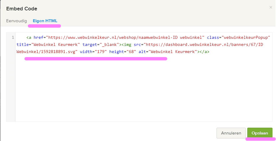 Volg onderstaande stappen om de WebwinkelKeur banner bij JouwWeb te installeren.