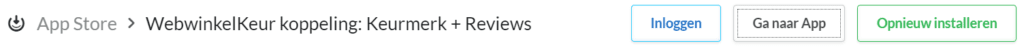 Stap 1: Als je onze WebwinkelKeur App al hebt geïnstalleerd dien je deze opnieuw te installeren. Dit heeft te maken met nieuwe toestemming die we behoeven om orderdata te vragen. Dit kun je door in te loggen in Lightspeed > Apps > WebwinkelKeur > Opnieuw installeren > Toegang verlenen.