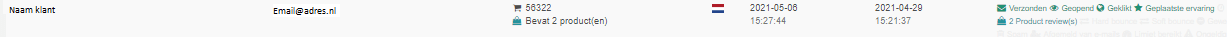 De uitnodigingen die verzonden zijn met de mogelijkheid om een product review achter te laten kun je herkennen aan een icoontje van een blauwe winkeltas.