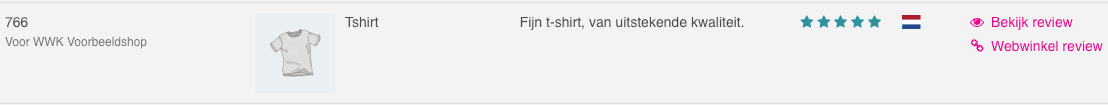 Wanneer je nieuwe site reviews en product reviews krijgt, dan zul je deze terugvinden onder Beoordelingen > Product reviews. Publiek reageren op product reviews kun je doen via je eigen WooCommerce webwinkel, aangezien de product reviews daar ook getoond worden.