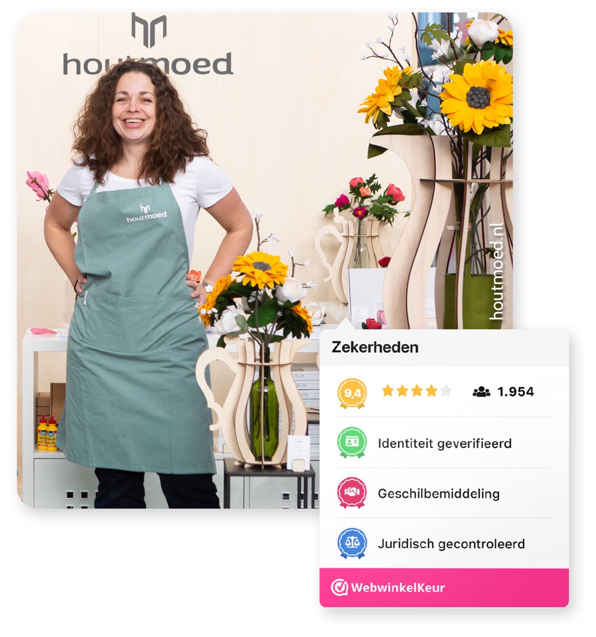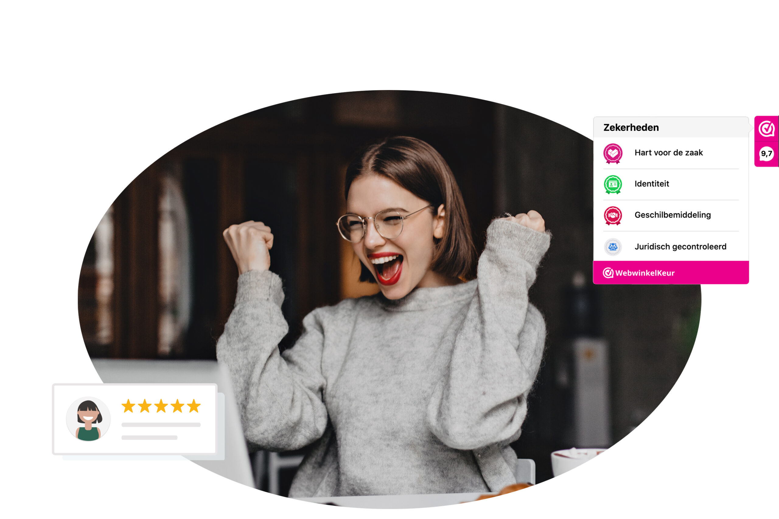 Met WebwinkelKeur laat je zien dat jouw shop juridisch top voor elkaar is. Dat geeft vertrouwen en verhoogt je omzet tot wel 15%. Mooie reviews versterken dat effect nog eens extra.