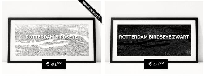 Artofrotterdam.com gebruikt stickers om de meest verkochte producten uit te lichten.[/caption]