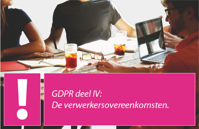 Onder de GDPR bent u verplicht om met partijen die persoonsgegevens voor- of namens u - verwerken een overeenkomst te sluiten waarin in het bijzonder aandacht is voor privacy en dataprotectie. In dit weblog leest u hoe u een verwerkersovereenkomst herkent en waar deze precies aan moet voldoen. Het is van belang dat u vóór 25 mei 2018 deze overeenkomsten kunt overleggen aan de Autoriteit Persoonsgegevens in het geval dat zij er om vragen. Heeft u het één en ander niet voor elkaar dan riskeert u een spreekwoordelijke tik op de vingers en mogelijk zelfs een boete.