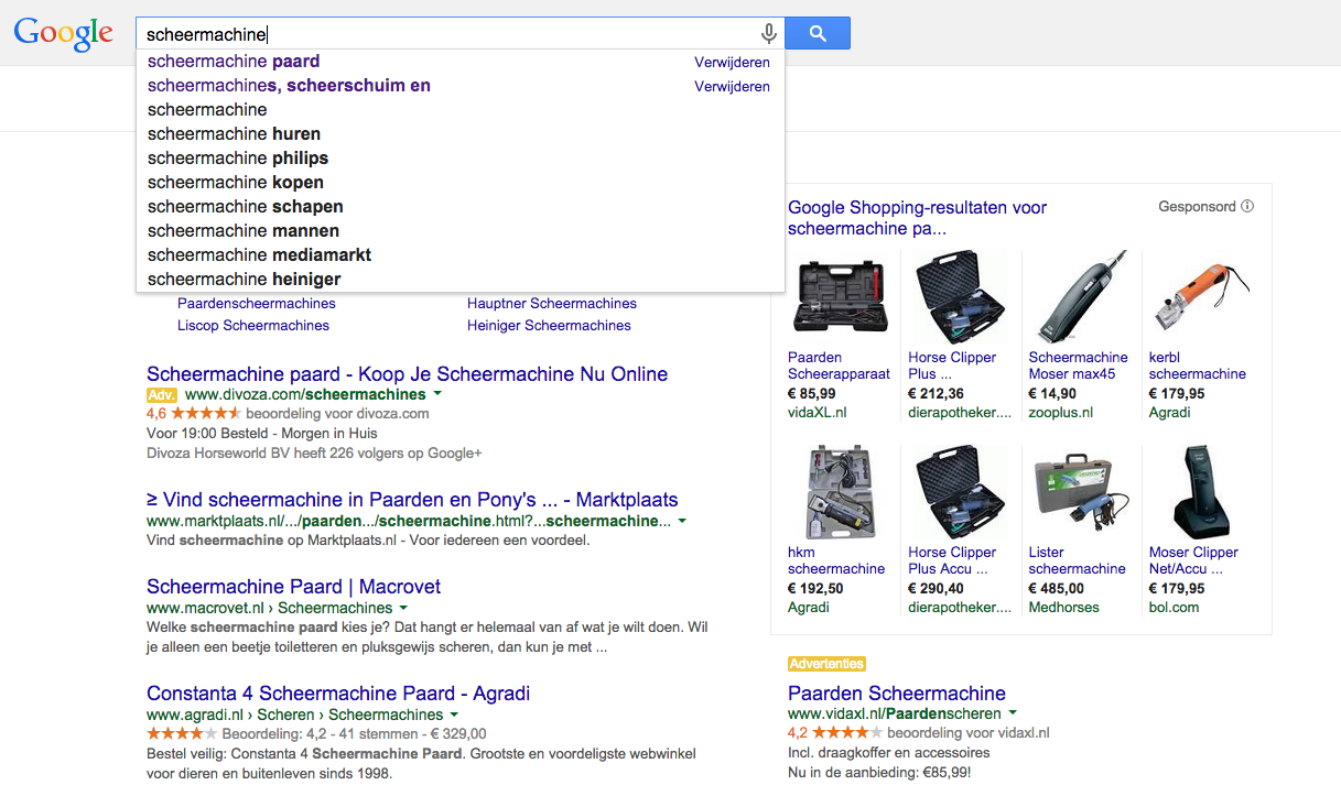 Zoekgedrag van consumenten op het woord 'scheermachine'[/caption]