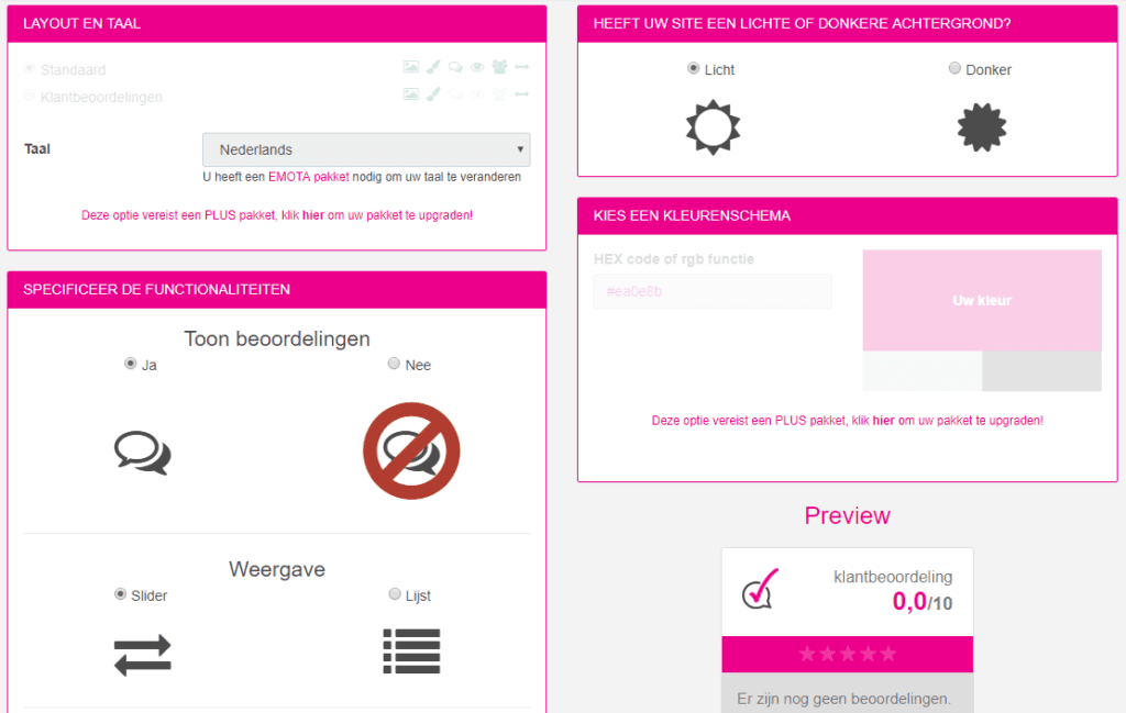 Al WebwinkelKeur lid? Plaats de nieuwe widget dan vandaag nog. Je vindt hem door in te loggen op dashboard.webwinkelKeur.nl en vervolgens op op "installatie" -> "overzicht" te klikken, kies daarna voor "Widget". Je komt dan in de stap-voor-stap wizard waarbij een kleine Javascript code wordt aangemaakt. Deze kun je eenvoudig kopiëren en plakken in jouw webwinkel software op de plek waar je wilt dat de widget verschijnt. Kom je er niet uit? Laat het ons dan weten.
