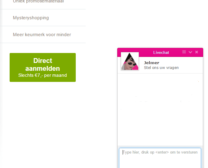 Eén van de medewerkers op de livechat van Stichting WebwinkelKeur.[/caption]