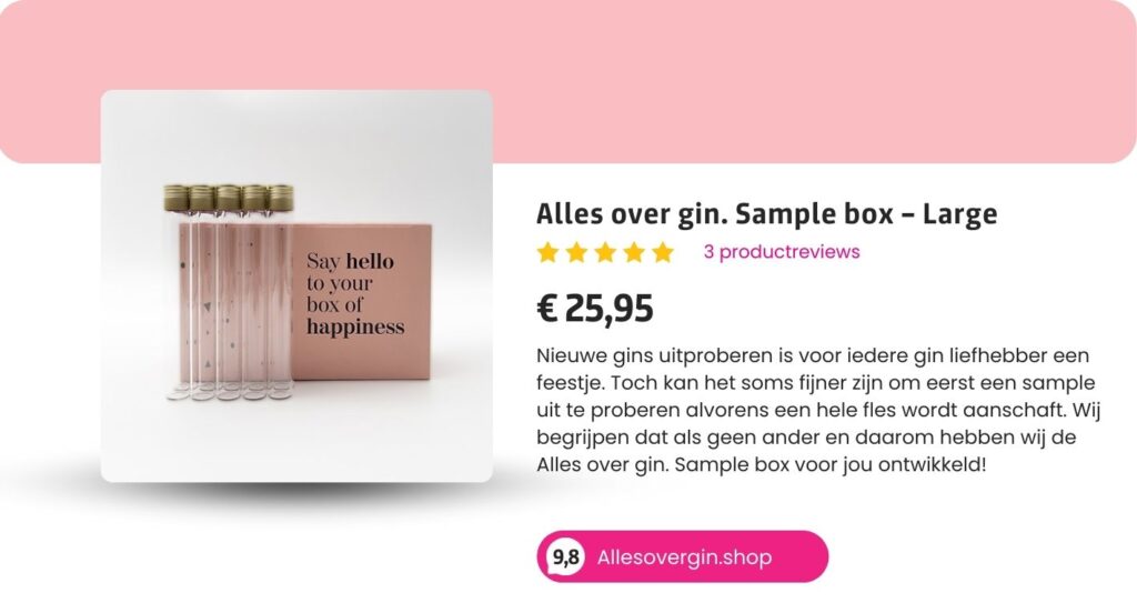 Er gaat volgens haar veel liefde, passie en ambacht schuil achter een gin fles. 'De producten die ik verkoop zijn allemaal premium producten en ik vind het erg belangrijk dat je als ginliefhebber blij wordt van een nieuwe gin. Ik besteed dan ook erg veel aandacht aan persoonlijk contact en ik probeer altijd meer te geven dan de ontvanger verwacht. Daarbij ken ik alle producten (en de eigenaren erachter) persoonlijk. Hierdoor kan ik ginliefhebbers daadwerkelijk én uitgebreid adviseren over een nieuwe gin. En als iemand op zoek is naar een uniek pakket, dan denk ik mee, net zolang tot we het perfecte cadeau-pakket hebben gemaakt voor het budget dat de klant heeft.''Laten zien dat het "veilig" is om bij mij te bestellen'