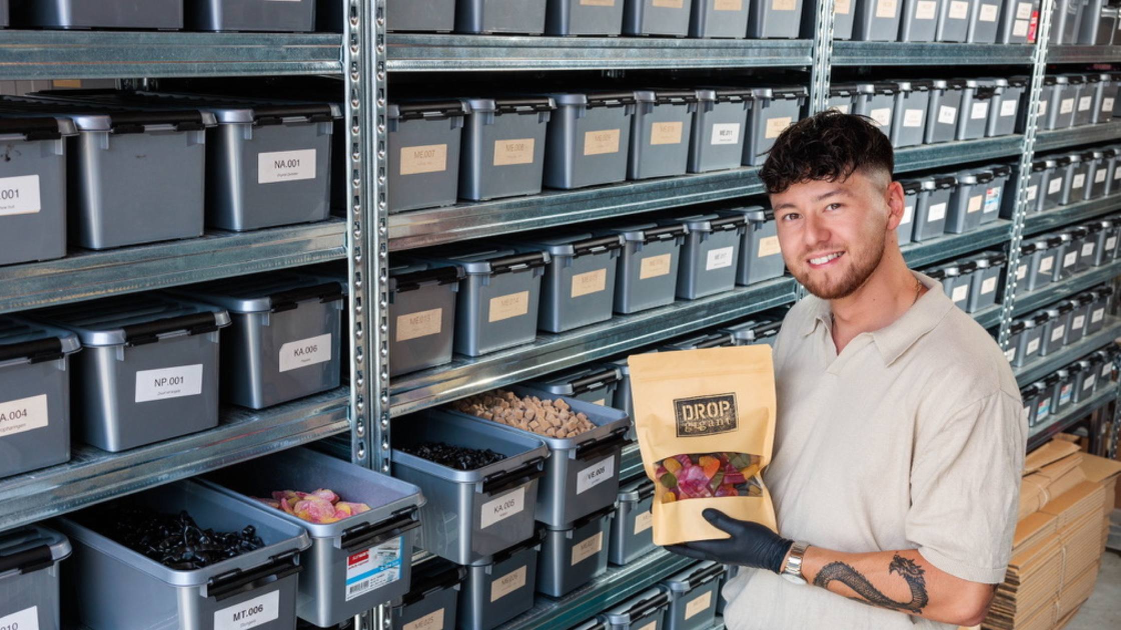 Louis, Sjoerd en Niels startten het bedrijf naast hun baan in loondienst, maar de een na de ander zegde het afgelopen jaar zijn baan op om fulltime aan Dropgigant te kunnen werken. In eerste instantie richtte de webshop zich vooral op consumenten, maar al binnen twee maanden kwam de eerste grote zakelijke order binnen. ‘Nu komen ze van alle kanten: gemeentes, overheden, echt hele grote bedrijven, dat zijn leuke orders.’ Toch pakken Louis, Sjoerd en Niels alles nog zelf in. ‘Het mooiste van onze website is dat we bijna elk snoepje aanbieden in een verpakking van 100 gram. We kopen groot in bij fabrikanten in Nederland en we importeren zelf. We verpakken iedere bestelling in kraftzakjes.’ Daarbij komt hun horeca-ervaring van pas. ‘We zijn allemaal begonnen in de horeca. En een bon is een bon, of het nu 5 drankjes zijn of 5 zakjes snoep. Ons vul-magazijn is qua logistiek zelfs ingericht als een bar. Het is een serieuze operatie, er staan grote stellingkasten vol afgesloten bakken en een grote RVS werkbank. Mooi om te zien, in het begin pakten we op het bureau in, met een weegschaaltje van €5 en een plastic schepje. Maar elke dag dat je bezig bent probeer je het ook een beetje te optimaliseren’. [caption id="attachment_110660" align="aligncenter" width="2240"]