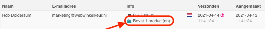 Welke klanten de mogelijkheid krijgen om ook een product review achter te laten kun je zien binnen je dashboard onder Uitnodigingen > Verzonden. Bij de uitnodigingen met een winkeltasje en de tekst "Bevat x product(en)" is de mogelijkheid tot het plaatsen van een product review beschikbaar.