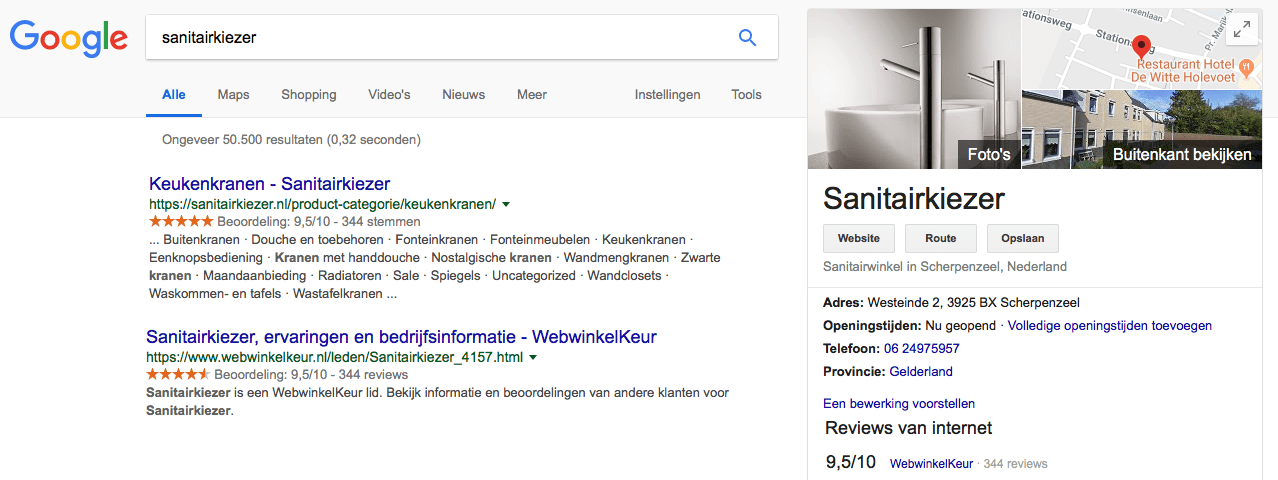 Er zijn nog wel mogelijkheden om sterren in de zoekresultaten te krijgen, maar de sterren moeten dan echt gaan over het onderwerp van de pagina. Als jij bijvoorbeeld bij een bepaald product reviews verzameld hebt en die weergeeft op je website, dan maakt dit product nog wel kans op sterren. Ook de ledenpagina bij WebwinkelKeur zal sterren blijven weergeven in de zoekresultaten, omdat wij reviews over jou weergeven op een site van ons.