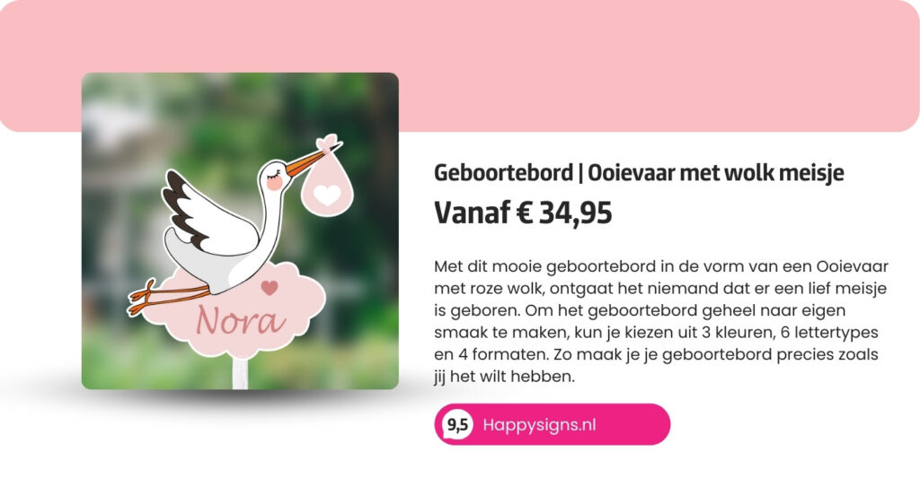 Wat heeft het lidmaatschap van WebwinkelKeur Happy Signs gebracht? ‘Met name vertrouwen en hierdoor meer klanten. Klanten hechten waarde aan de reviews die wij hebben ontvangen. Dankzij inmiddels ruim 1500 reviews, die gemiddeld een 9,5 scoren, hebben we het vertrouwen van onze klanten gewonnen. Die positieve beoordelingen zijn een directe afspiegeling van de kwaliteit van onze producten en service. Wat ik enorm waardeer is als klanten toch een goede review geven, ook als er iets is misgegaan. Omdat ze vinden dat we het goed hebben opgelost.’ Happy Signs verkoopt overigens niet alleen geboorteborden. ‘We bieden nu al borden aan voor geslaagden, verjaardagen en huwelijken, maar dat assortiment zou ik in de toekomst graag willen uitbreiden. Ons motto is niet voor niets: Laat zien dat je iets te vieren hebt!’