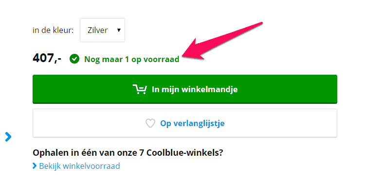 Wij mensen zijn vooral bang voor verlies. De angst voor verlies is krachtiger dan onze wil om iets te krijgen of winnen. Je kunt dus heel leuk inzetten op positieve verkooppraatjes, maar jouw koper wordt meer getriggerd wanneer er een risico is ergens iets te verliezen. Of iets mis te lopen. Dat is waarom uitverkoop vaak zo goed loopt. Want: OP=OP , de laatste stuks , alleen vandaag ; verzin er zelf nog maar een paar bij. Dat willen we niet missen, dus worden we inhalig. En natuurlijk wil je niet altijd uitverkoop houden. Gelukkig zijn er ook nog andere vormen van verliestaal. In je webwinkel is dat bijvoorbeeld ‘Nog 3 stuks op voorraad’.