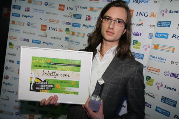 Wouter Hol als winnaar van de Thuiswinkel Award XS 2012 in de categorie Consumentenelektronica, ook het jaar daarvoor won Kabeltje.com deze publieksprijs[/caption]