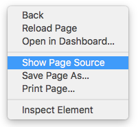 De eerste stap is controleren of het script dat onze sidebar laadt wel wordt geladen. Dit kan eenvoudig door de broncode van de pagina te bekijken. Ga in je browser naar de pagina waar je de sidebar verwacht en klik met je rechtermuisknop op een leeg gedeelte. Kies daar voor "Show Page Source" of "Paginabron weergeven".