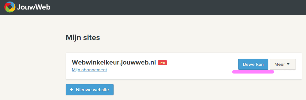- Login binnen je JouwWeb omgeving en klik op 'Bewerken'.