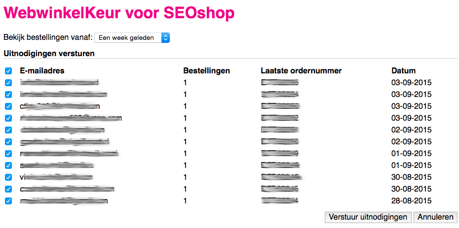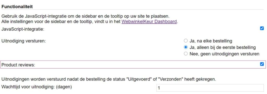 Je klanten ontvangen vanaf nu een uitnodiging om jouw webwinkel te beoordelen. Nadat jouw webwinkel is beoordeeld krijgen zij de mogelijkheid te zien om hun producten te kunnen beoordelen. Om te controleren of alles goed is ingesteld en er uitnodigingen worden verstuurd met de mogelijkheid om een product review achter te laten kun je inloggen in je WWK Dashboard > Uitnodigingen > Verzonden.