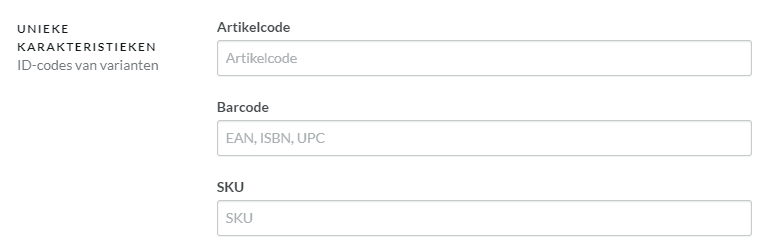 Deze codes kun je in Lightspeed toevoegen door in te loggen in je Lightspeed dashboard > Producten > Product selecteren > Voorraad & varianten > Variant toevoegen > Unieke karakteristieken > Barcode.