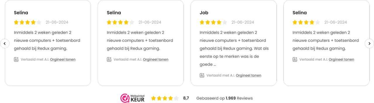 Maak eenvoudig een widget aan die past bij jouw webwinkel. Vanaf het PLUS-pakket kun je deze widget een andere kleur geven. De widget hoeft niet zoals links van de afbeelding hieronder uit te zien. Je kan hem ook kleiner tonen door middel van een balk (rechts van de afbeelding). Daarnaast zijn er nog talloze verschillende manieren om deze reviewwidget vorm te geven. Het leuke aan deze widget is, is dat hij interactief is. Zo sliden de laatste reviews voorbij en kan de bezoeker er nog op klikken waardoor er een pop-up venster van jouw ledenpagina verschijnt. De bezoeker verlaat met deze handeling dus niet jouw webshop.