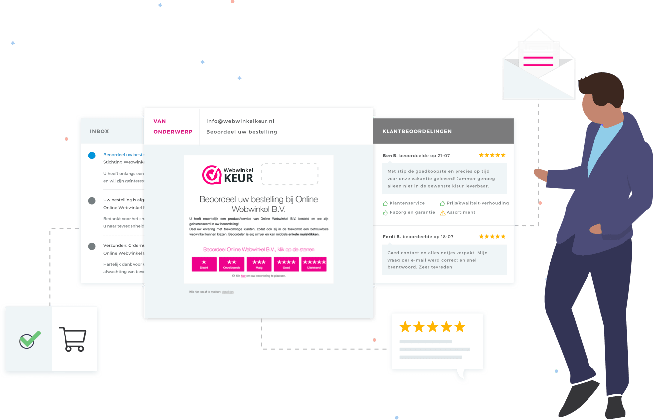 Reviews, klantbeoordelingen, recensies - hoe je ze ook wilt noemen. Over één ding kunnen we het over eens zijn: ze zijn goud waard voor je webwinkel. Het toont de verleende service van jouw online shop aan je potentiële klant. Met het reviewsysteem van WebwinkelKeur verzamel je eenvoudig beoordelingen van jouw webwinkel. Dit doen we al sinds 2010! Naast reguliere reviews zoals klantbeoordelingen, kun je bij WebwinkelKeur ook product reviews verzamelen voor jouw WooCommerce, Lightspeed en Shopify webshop.