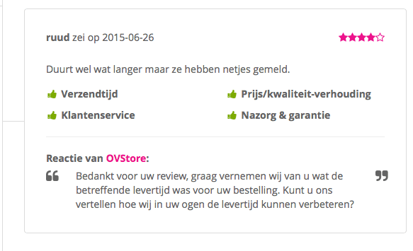 De reactie van de webwinkel wordt weer netjes weergegeven onder de beoordeling[/caption]