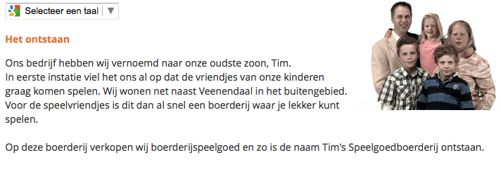Een persoonlijk verhaal op de "Over-ons-pagina" bij Tims speelgoedboerderij[/caption]