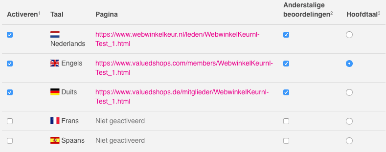 Een beperking van ons meertalige pakket was dat slechts 1 taal per webwinkel werd ondersteund. Dat is met de update van deze week niet langer het geval. Je kunt jouw ledenpagina nu beschikbaar maken in meerdere talen. Daarbij kun je zelf kiezen of jouw ledenpagina alleen de beoordelingen toont in de betreffende taal of alle beoordelingen weergeeft. Zo kun je er voor kiezen op jouw Duitse ledenpagina enkel Duitse klantbeoordelingen weer te geven en op jouw Engelse ledenpagina alle klantbeoordelingen weer te geven. [caption id="attachment_56147" align="aligncenter" width="789"]