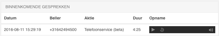 Je kunt alle gesprekken laten opnemen en later online afluisteren. Op deze manier heb je bewijs dat een gesprek heeft plaatsgevonden. Tevens kan het dienen als kwaliteitscontrole bij het uitbesteden van je klantenservice. [caption id="attachment_54489" align="aligncenter" width="763"]