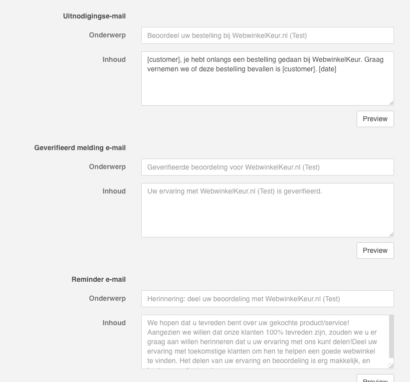 Stel dat je echter een andere onderwerp wilt gebruiken voor het uitnodigingen dan kon dat voorheen niet. Met de huidige update heb je echter de volledige vrijheid om zelf een onderwerp in te stellen. Dit kan ook door middel van een variabel in combinatie met de voornaam van de klant, bijvoorbeeld "Jelmer, hoe beoordeel jij je bestelling bij Webwinkel.nl?". Het voordeel van zon persoonlijk onderwerp is dat je hiermee de kans verhoogt dat jouw klant de e-mail daadwerkelijk opent. En daarmee is de kans dat hij een beoordeling achter laat een stuk hoger.