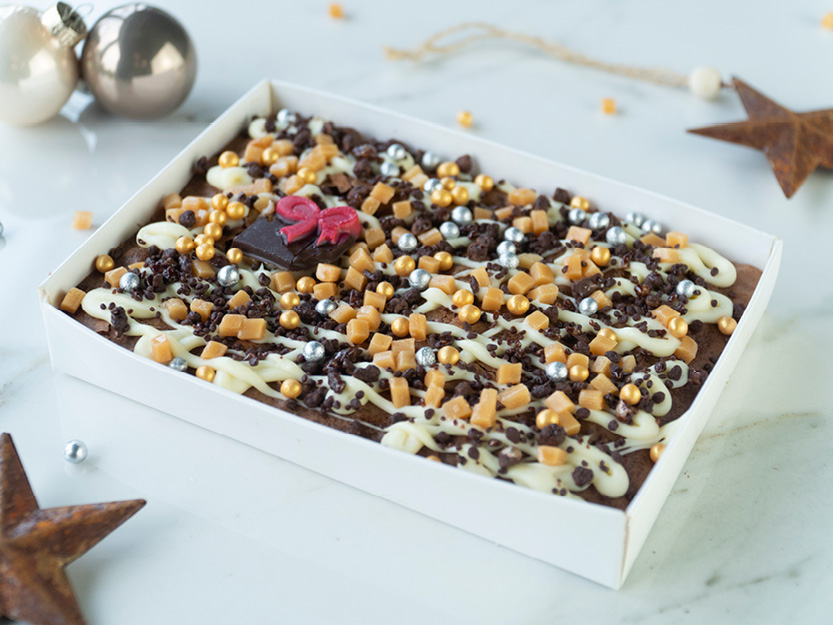 De Sparking Holiday brownie is op dit moment onze hardloper. Dit is een overheerlijke brownie in een vrolijk winters thema. De combinatie tussen de witte chocolade, karamel en suikerparels - afgemaakt met een zegel van chocolade - zorgen voor een symfonie aan smaken. De suiker die bovenop ligt is knettersuiker wat een goede dosis aan jeugdsentiment omhoog brengt. Al met al een leuke toevoeging aan de Sweetbox voor het einde van het jaar!Jullie verkopen zoetigheden. Hoe zorg je ervoor dat deze vers aankomen bij de klant?