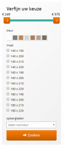 . Bij het uitzoeken van een bed bieden zij je de mogelijkheid om te filteren op 4 handige punten; de prijs, de kleur, de afmeting en de optie tot opbergladen. Iemand die op zoek is naar een zwart tweepersoonsbed van 180 bij 200cm met opbergladen kan hier gemakkelijk tot een passend resultaat komen. Denk van tevoren goed na over de specificaties van jouw producten en bedenk welke mogelijk nuttig zijn voor je potentiële klanten.