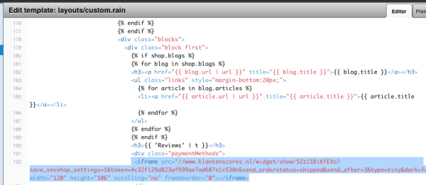 Voorbeeld van de oude Klantenscores Iframe code[/caption]