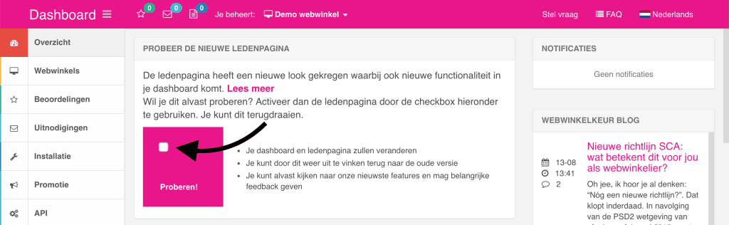 Nieuwe ledenpagina activeren binnen het WebwinkelKeur dashboard[/caption]