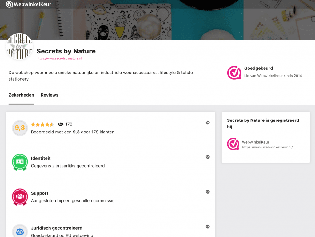 Naast dat we processen hebben geoptimaliseerd, kun je in de bètaversie onder andere de profielopmaak van je ledenpagina wijzigen. Pas de banner en omschrijving van je ledenpagina naar eigen smaak aan. Je kunt ook een profielfoto uploaden voor de persoonlijke touch of een icoon van je logo. Tevens kun je op verschillende niveaus badges verdienen , die de consument weer extra zekerheden geeft. Hoe meer badges je unlockt, hoe beter dit er voor je ledenpagina uitziet. Op deze manier hebben wij het inzichtelijker gemaakt hoe onze leden zorg dragen voor een fijne en vooral een veilige shopervaring. [caption id="attachment_78556" align="aligncenter" width="606"]