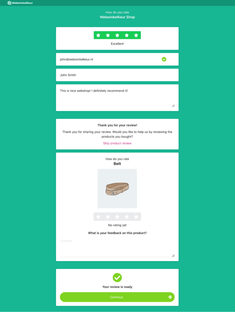 - Val klanten niet lastig met teveel e-mails. Verzamel zowel site- als product reviews met één beoordelingsverzoek.