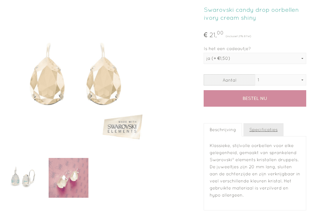 Je wilt je bezoekers aanzetten tot actie (bijvoorbeeld het kopen van je product). Een Call To Action (CTA) helpt je daarbij. Dit is een opvallende button die je bezoekers aanspoort tot klikken. Voor veel webwinkeliers is dit waarschijnlijk een koopknop. Het is belangrijk dat deze CTA goed te zien is en duidelijk beschrijft wat er op gebeurt als je klikt. Zorg dat hij opvalt door een contrasterende kleur en een groter formaat. [caption id="attachment_62669" align="aligncenter" width="1062"]