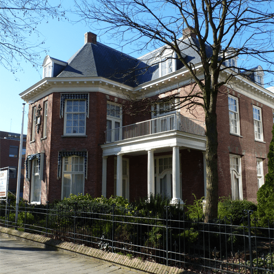 Zij aanzicht van de M.H. Tromplaan 8 - Stichting WebwinkelKeur heeft een kantoor op de eerste verdieping[/caption]