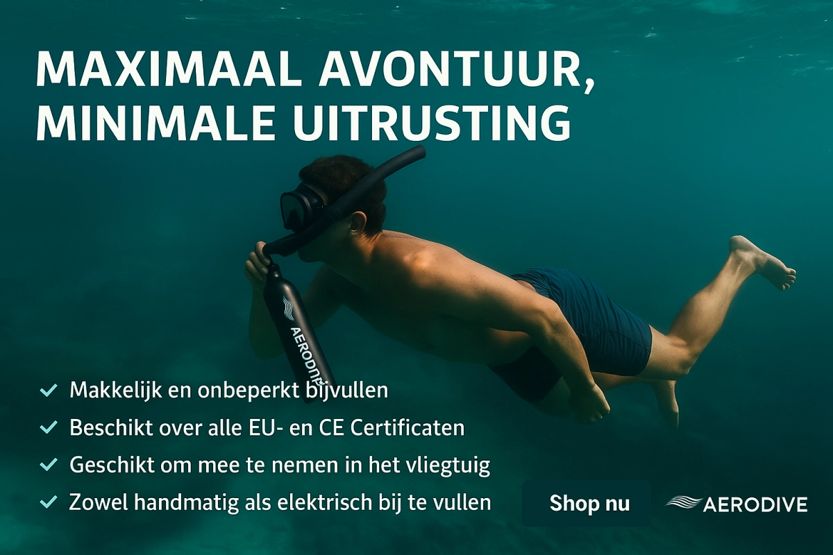 AeroDive T500, dé hervulbare mini duikfles. Adem tot 10 minuten onder water met deze kleine duikfles. Geschikt voor beginnende en ervaren duikers.