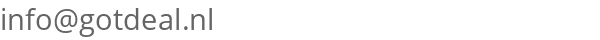 GotDeal is de eind-consument webshop van het Nederlandse bedrijf Easy Holland, aanwezig in Nederland sinds 2011 en actief in import-export groothandel, geregistreerd in de Kamer van Koophandel nr. 52616312. Alle bedrijfsgegevens zijn te vinden in de webshop, op de homepage, door de verwijzing links te volgen, of op www.easyholland.nl. GotDeal werd opgericht met de bedoeling om scherpe prijzen aan te bieden aan eindgebruikers voor geselecteerde producten, gebruik makend van de koopkracht die in de loop van de jaren is opgebouwd. Wij bieden koopjes! Alle producten zijn beschikbaar voor onmiddellijke levering vanuit ons Nederlands magazijn, met verzending binnen 24 uur, soms gratis. Alle zendingen via onze partner Post.nl zijn 100% verzekerd tegen schade en diefstal door de Easy Holland bedrijfsverzekeringspolis. Alle prijzen worden dagelijks gecontroleerd, betalingscommissie, belasting en BTW zijn in de prijzen inbegrepen. De producten zijn nieuw, wij verkopen geen tweedehands, en zijn onderworpen aan wettelijke en fabrieksgaranties.