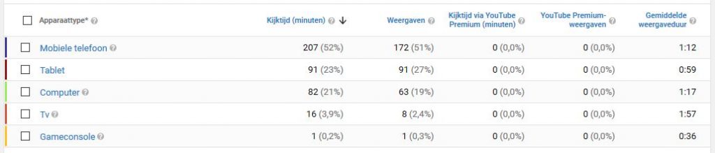 Opmerkelijk is dat wanneer ik naar de statistieken kijk van video’s die verticaal zijn, deze op een mobiel juist beter worden gekeken. In de onderstaande afbeelding is het kijkgedrag te zien van een unboxing video welke verticaal is opgenomen met de mobiel. Het aantal mobiele gebruikers ligt nu boven de 50% terwijl de gemiddelde weergaveduur een zelfde verschil laat zien.