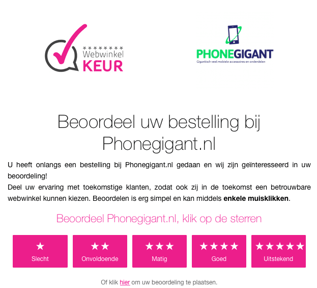 In het onderzoek wordt aangegeven dat het verschil komt door een verschillend gemiddelde. Een verklaring die het onderzoek hiervoor geeft is de vraagstelling. Dat is naar ons idee echter niet helemaal waar. Iemand die bij ons tevreden is komt met een "goed" ook uit op een 8. Waarom het cijfer dan wel hoger is naar ons idee? Een mogelijke verklaring is dat wij nieuwe technieken gebruiken als in-mail beoordelingen , hiermee is de drempel tot het plaatsen van een beoordeling erg laag. De ervaring leert dat een ontevreden klant sneller een ervaring deelt dan een tevreden klant. Door de drempel te verlagen komt de gemiddelde score daarmee hoger uit. De in-mail beoordelingen werken als volgt in de e-mail kan de consument direct een beoordeling geven, hierna hoeft hij deze enkel aan te vullen met een korte tekst. De naam en het ordernummer en het e-mailadres lezen we daarbij al uit van de webwinkel software. Extra aanvulling van de beoordeling volgt pas in stap 2, dit is echter optioneel en klanten die deze stap over slaan kunnen alsnog gepubliceerd worden. In sommige e-mail clients waaronder Gmail kan de beoordeling zelfs helemaal binnen de e-mail plaatsvinden . De consument hoeft dan zijn e-mail niet te verlaten om een beoordeling te delen. Wat de verklaring voor het verschil ook is, het uiteindelijk resultaat is wel dat er een hogere conversie geboekt wordt met WebwinkelKeur, dit terwijl we een streng proces hebben dat de betrouwbaarheid van de beoordelingen garandeert. [caption id="attachment_54344" align="aligncenter" width="623"]