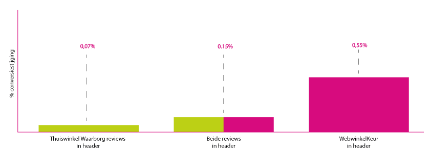 - Thuiswinkel Waarborg reviews in header: absolute conversie stijging van 0,07%