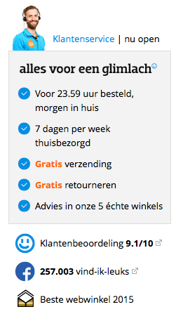 CoolBlue geeft op elke pagina deze voordelen weer[/caption]